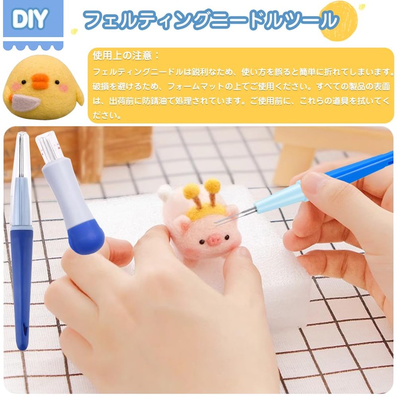 - Caution: The felt needles are sharp, so it will break easily if you use them incorrectly. Please use on the foam mat to avoid damage. All product surfaces are treated with rust proof oil before shipment. Wipe these tools before use
