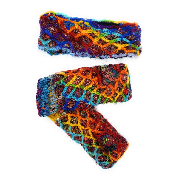 - Keep warm with these great headband sets from Nepal - Handmade by local artisans. Made of Sheep's Wool with soft recycled Silk Fibers mixed in, all Hand Dyed and Hand Knit. A diamond pattern in chain stitch is overlaid to make a special pattern.