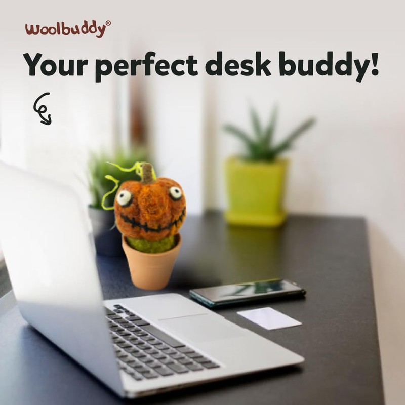 Woolbuddy Fake Plant Felted Succulent - Pumpkin, Cute Desk Decor – Small Artificial Plant for Office, Coffee Table, or Living Room, Perfect for Small Spaces, Easy to Maintain and Stylish