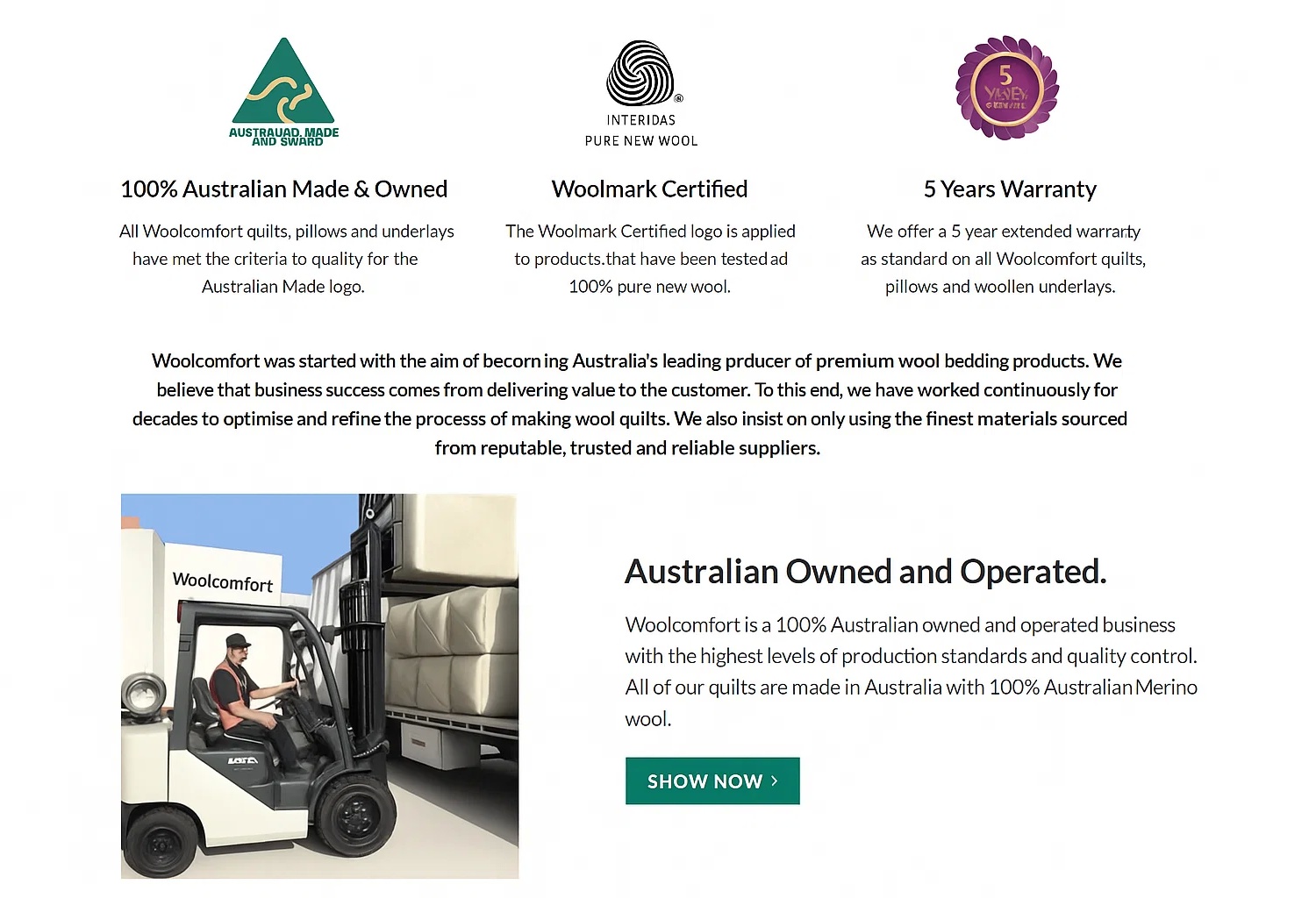 Woolcomfort started with the aim of becoming Australia’s leading producer of premium wool bedding products.