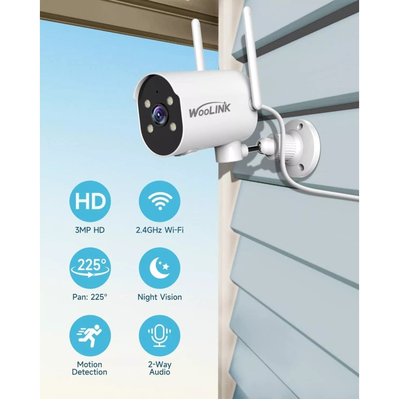 - Features: Motion/PIR Activated, Night Light, Night Vision, Outdoor/Weatherproof, Plug in, Waterproof, Wi-Fi, Audio Talk