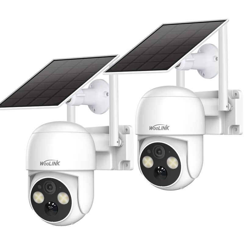 WOOLINK 2PCS 4MP Solar Security Camera Wireless Outdoor, 2.5K Solar/Battery Powered Camera for Home Security, Pan/Tilt 2.4GHz WiFi Camera with PIR, 2-Way Audio, Cloud/SD, Color Night Vision