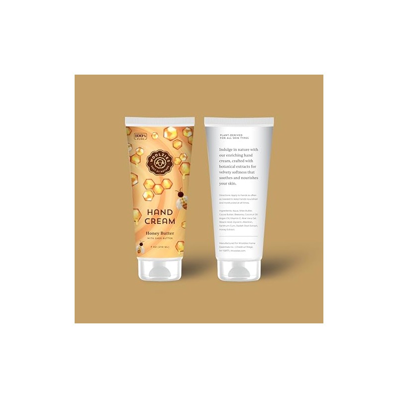 Woolzies Natural Shea Butter Hand Cream, 7 oz – Deep Moisturizing & Nourishing Lotion for Dry Skin – All Natural Ingredients, Essential Oils & Vitamin-Enriched Formula (7 Ounce, Honey Butter)