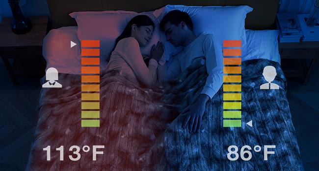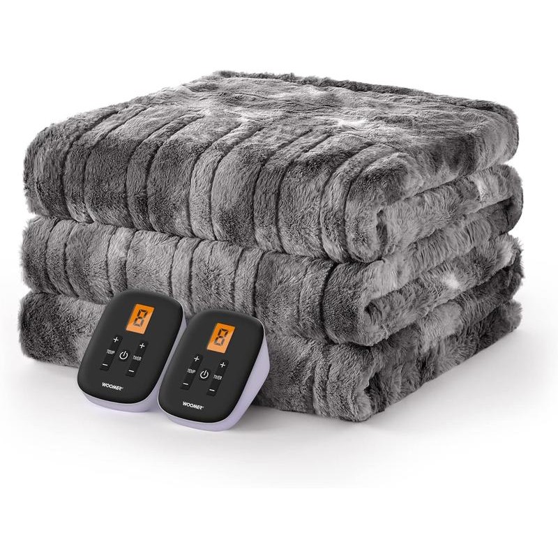 [Dual Controllers for Customized Settings] This 84’’*90’’ WOOMER heated blanket is featured with dual controllers to control the A/B zones for different heating demands. 10 heat level settings from 86℉ to 113℉, and 0.5h to 12h (0.5h interval) auto-off timer for you to choose the perfect warmth and comfort in desired length of time; A 19-feet extra-long cord is featured to offer maximum flexibility and convenience.