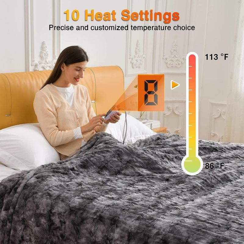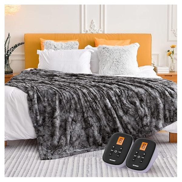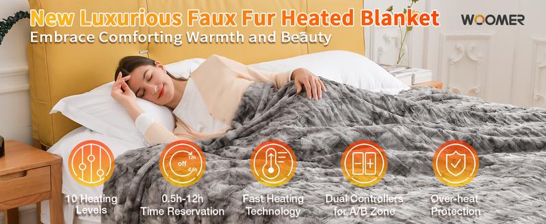 WOOMER [5 Year Warranty] Heated Blanket Queen Size Electric Blanket 84"x 90", Faux Fur Fast Heating, 10 Heating Levels & 0.5-12H Auto Off, Dual Control, Over-Heat Protection, ETL Certification - Bedding Size: 84*90