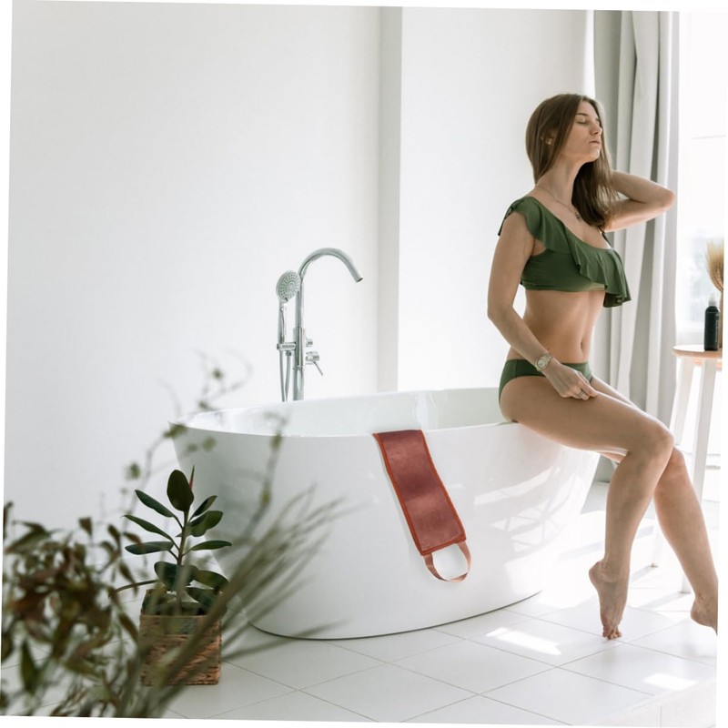 WOONEKY 2pcs Back Applicator Band Tanning Oil Strip for Shower Bath Long Strip Bath Towel Massage Strap Soft Comfortable