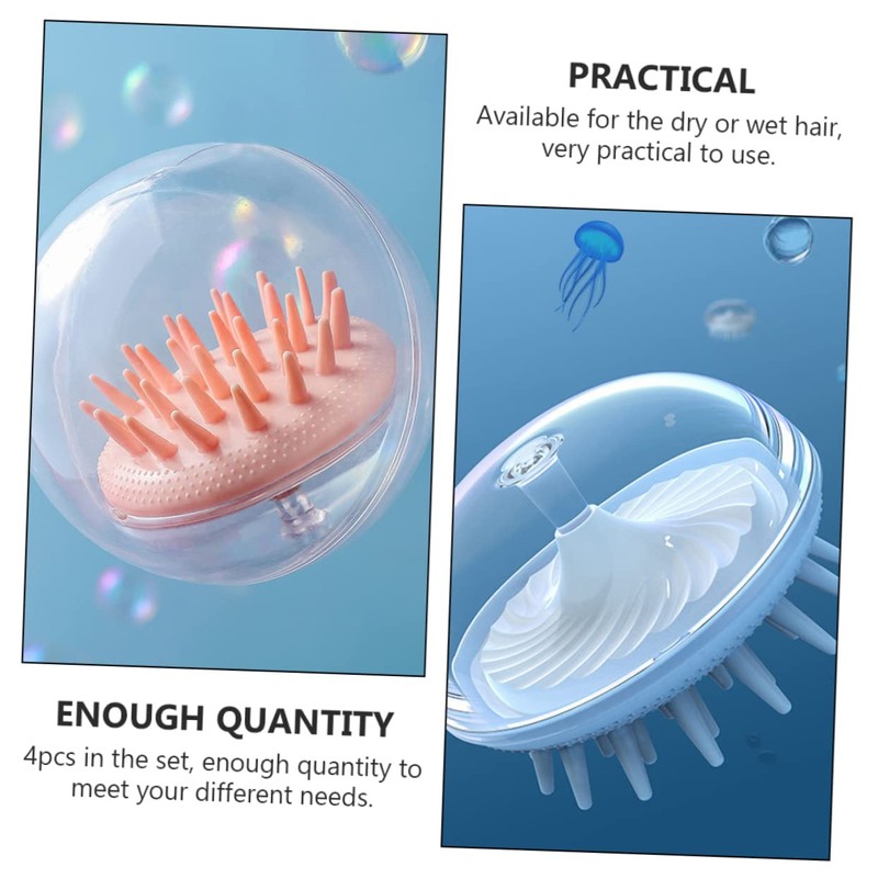WOONEKY 4pcs Shampoo Brush Dual Function for Hair Washing Scalp Cleaning Gentle Hair Random Colors