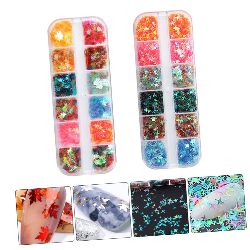 WOONEKY Autumn Maple Leaf Sequins and Star Glitter for Nail Art of Manicure Decor for Nail Design and Craft Projects Safe and for Home and Salon Use