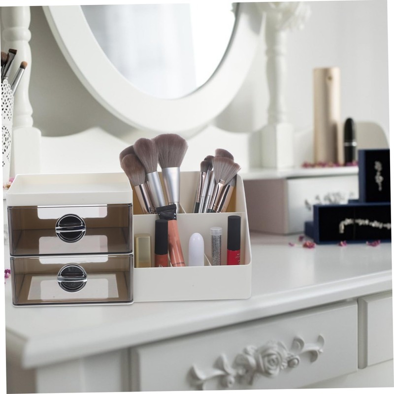 office drawer organizer This makeup storage box is also a great organizer for your bedside table.small desk organizer The multi-layer design allows you to store all types of makeup products, and the transparent small drawer covers make it easy to see the contents without having to pull them out.dorm desk organizer It is for keeping your cosmetics organized and easily accessible