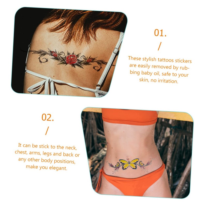 - These stylish stickers are easily removed by rubbing baby oil, safe to your skin, no irritation realistic.