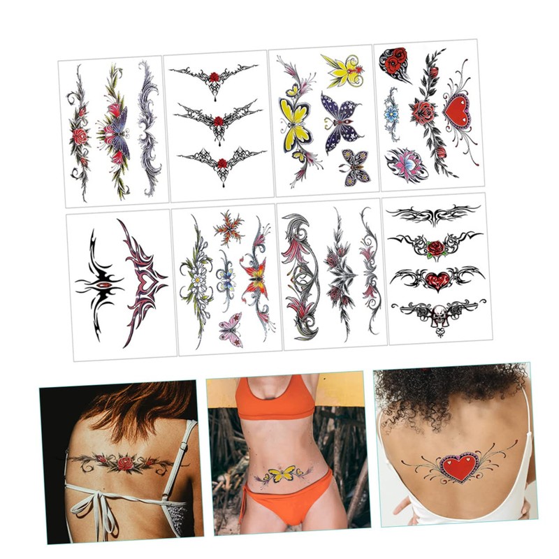 WOONEKY Waterproof Scar Covers Temporary Realistic Butterfly Flower Stickers Easy Application 8 Sheets Set