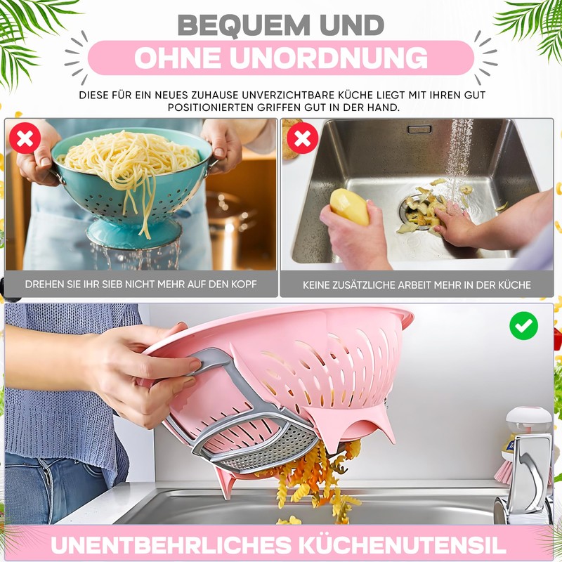 - Efficiency: Enjoy an effortless kitchen experience with our kitchen strainer made of BPA-free plastic. With side handles that can be pulled to allow pasta to slide through an opening into a pot, this strainer is the ultimate tool for quick and easy preparation of your favorite pasta dishes.
