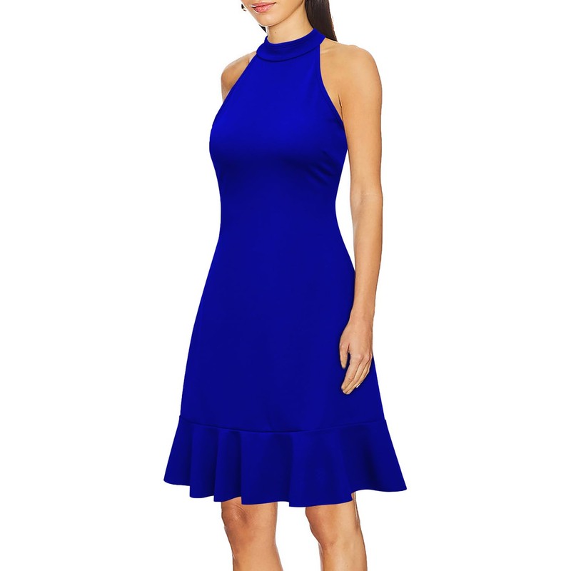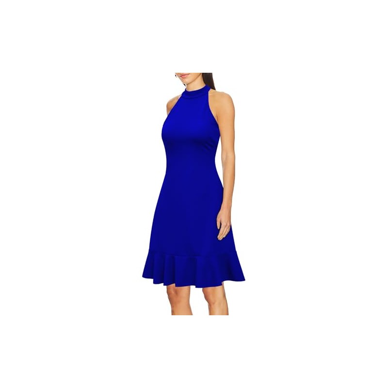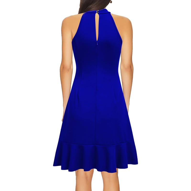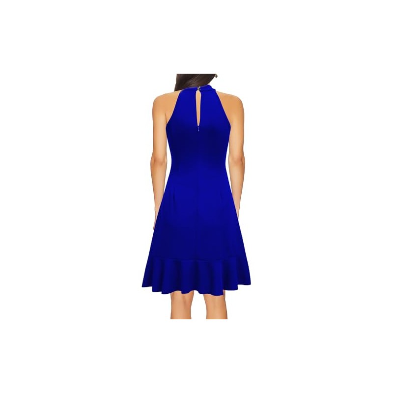- Feature: Halter Neck, Sleeveless, Back Zipper,Ruffle Hem, Solid Color, Slim Fitted,A Line Dress.