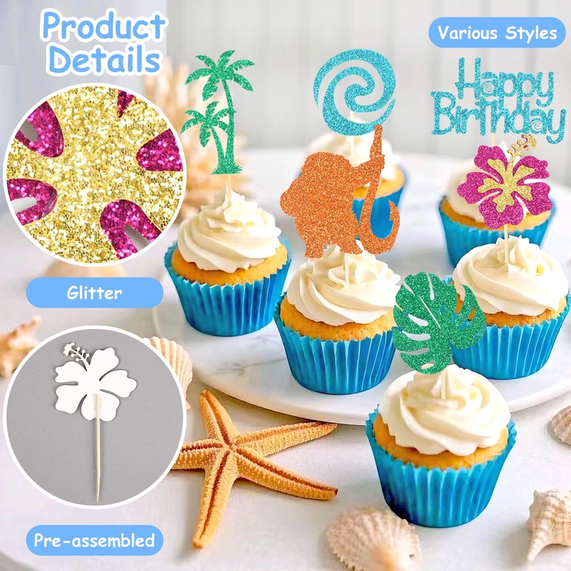 - Effortless Hawaii Party: Hawaii cupcake toppers are all pre-assembled. Simply insert the princess cupcake toppers into your food, and instantly elevate your moa theme party