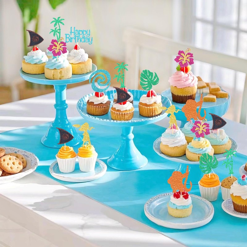 - Ocean Theme Decorations: You will get 24pcs cupcake toppers, including palm leaf, coconut tree, sail bot, flower, ocean whirlpool and two cartoon characters. Each design fits the ocean and Hawaiian theme, adding a touch of summer to your party