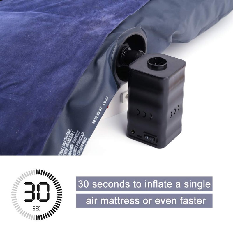 - 6000mAh batteries enables long-lasting power supply for 30 minutes continuous use without over-heat problem, filling 20 single air mattress by one time charging
