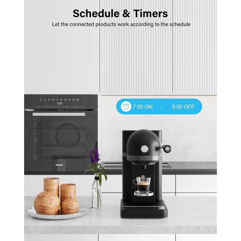 - Timer- und Countdown-Funktion: Automatisches Ein- und Ausschalten von Geräten zu bestimmten Zeiten. Z.B. Kaffeemaschine stellt sich dank Timer-Funktion morgens um 7 Uhr automatisch ein, für eine frische Tasse Kaffee. Countdown-Funktion ermöglicht zeitverzögertes Ein- oder Ausschalten von Geräten. Z.B. Kaffeemaschine schaltet sich automatisch 10 Minuten nach dem Brühen ab.