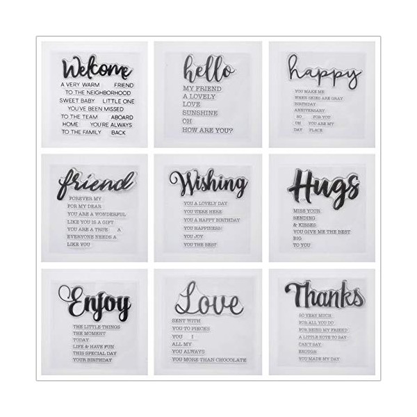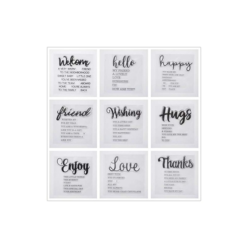 WooYangFun Joyful Home 9pcs/set Welcome Hello Happy Sentiments Rubber Clear Stamp for Card Making Decoration and Scrapbooking