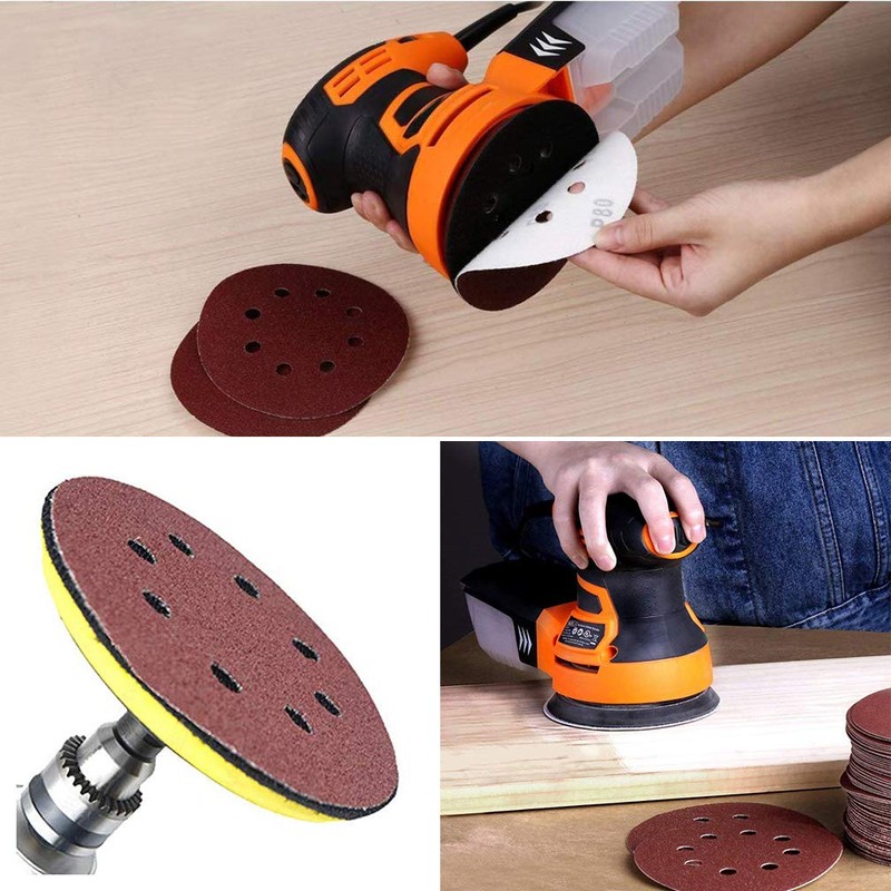 - 【8 holes Sanding Pads】Velcro round sanding discs backplane pre-punched with 8 holes for dust extraction, which can resistance to clogging and the high quality flocking on the back, sufficient adhesion, resistant to sanding, anti-static.