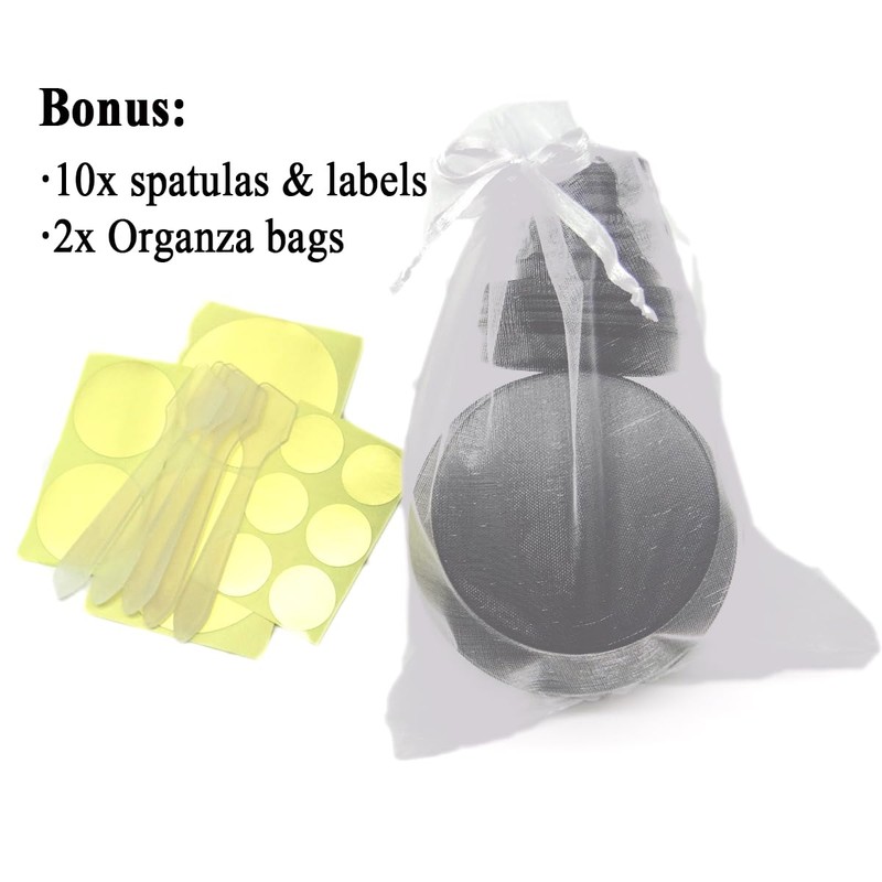 - Perfect bundle set: bulk pack meets your multi-purpose applications. Bonus Gifts (10 spatulas for easy dispensing + 2 organza drawstring bags for good organization + 6 pieces 50mm stickers) offer you more convenience and get much more favorites of your customers