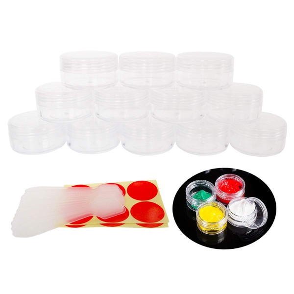 Wopanxye Pack of 12 Jars, 10 g/10 ml Empty Transparent Small Plastic Cream Jar - for Cosmetic Jars, Lip Balm Jars, Nail Art Containers, with Clear Screw Lid and 12 Pieces Mini Spatula & Label