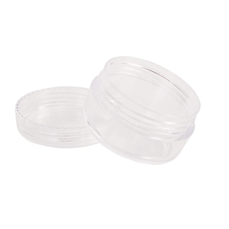 - ★Size & Quantity --- Color: Clear Diameter x height: 38.8 x 22.3 mm. Pack of 12 10 g/10 ml empty plastic containers with lid. Bonus gifts: 12 mini spatula, 12 labels and 3 organza bags.