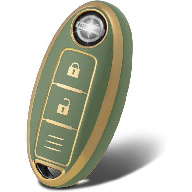 WORCAS Premium Soft TPU Key Case Cover Compatible with Nissan Altima Sentra Rogue Armada Pathfinder Versa Keyless Smart Key-3uttons (Gold-Green)