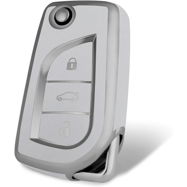WORCAS Smart 3 Button Key Fob Cover Case Compatible with 2018-2020 Camry SE/LE,RAV4 SE,Corolla SE/LE Smart Key(Quicksand-Silver)
