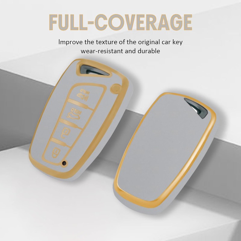 🚗High Quality🚗:Key case is made of premium soft TPU which is pretty durable. It is the ultimate protection for your car key.Also,New Golden rimmed designed by TPU covers all buttons of the original vehicle key,The flowing Silver on the surface of the car key shell looks unique, easier to find, and more flexible and convenient to use.