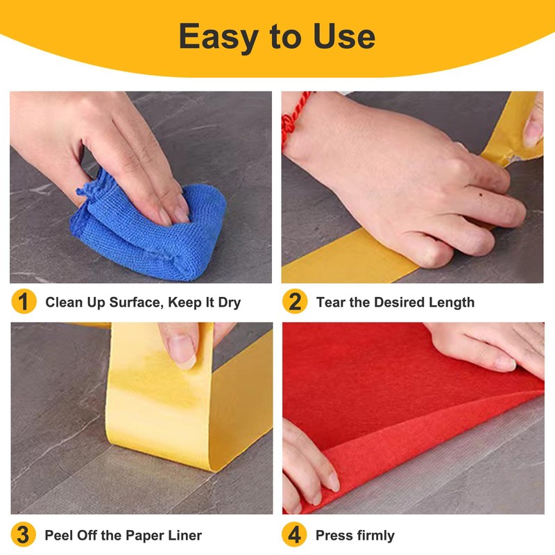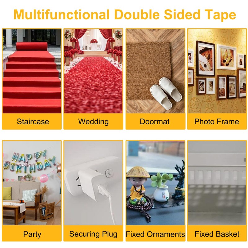 - Multipurpose Tape: Universal double sided tape is suitable for various surfaces such as metal, hardwood, concrete, rubber, ceramic tiles, glass, plastic, wall, etc. Carpet tape can also be used on the surface of home accessories, such as carpets, refrigerators, hooks, inserts, photo frames, sofa mats, posters, ornaments, DIY crafts
