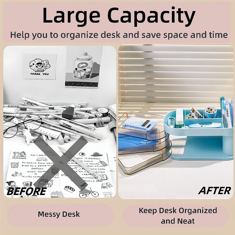 - 【Breite Anwendung】Eine praktische Aufbewahrungslösung, die für jeden Raum geeignet ist. Es kann Briefe, CD, Taschenrechner, Notizen, Hefter, Bänder, Scheren, Stifte, Kosmetik und andere kleine Accessoires speichern. Neben der Aufbewahrung von Schreibwaren kann es auch Kosmetika, Koeffizientenvorräte und andere Gegenstände sammeln. Es ist ein guter Assistent im täglichen Leben.