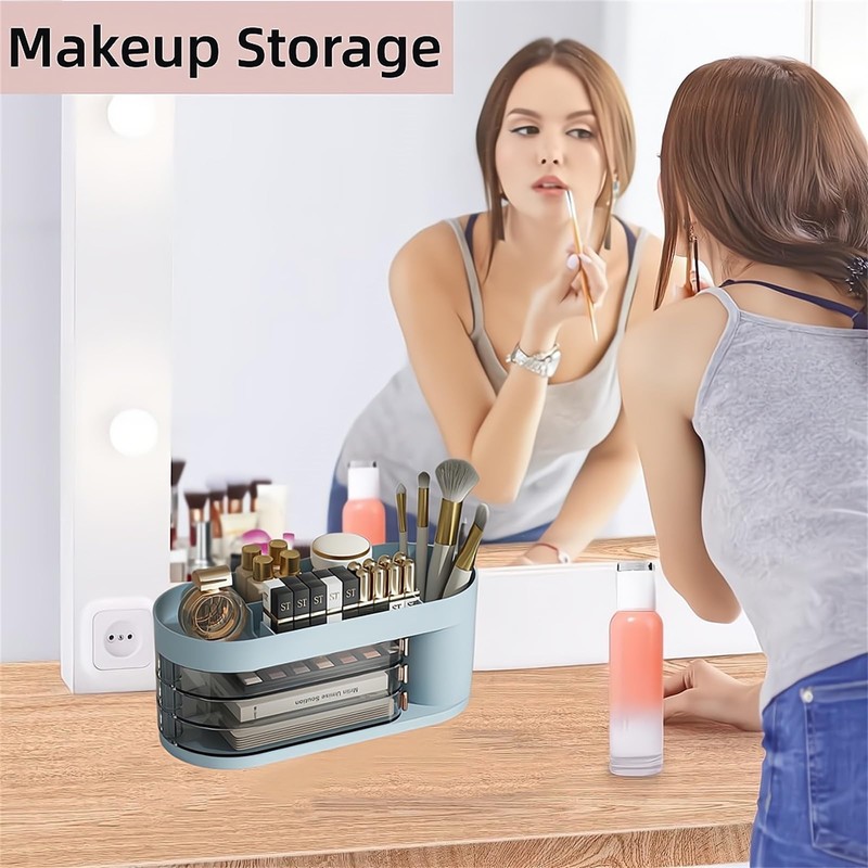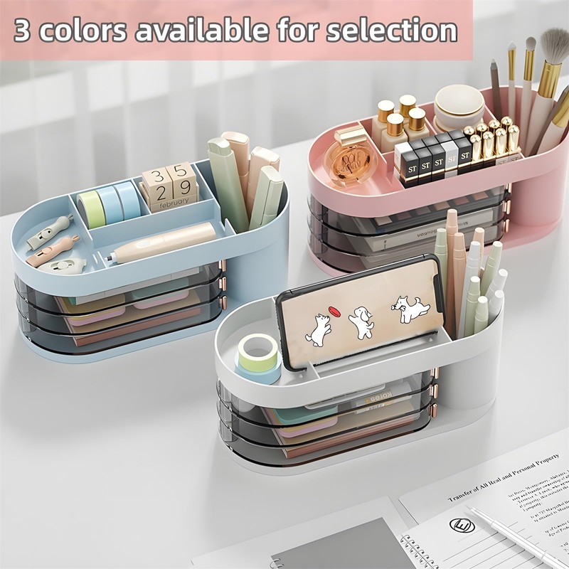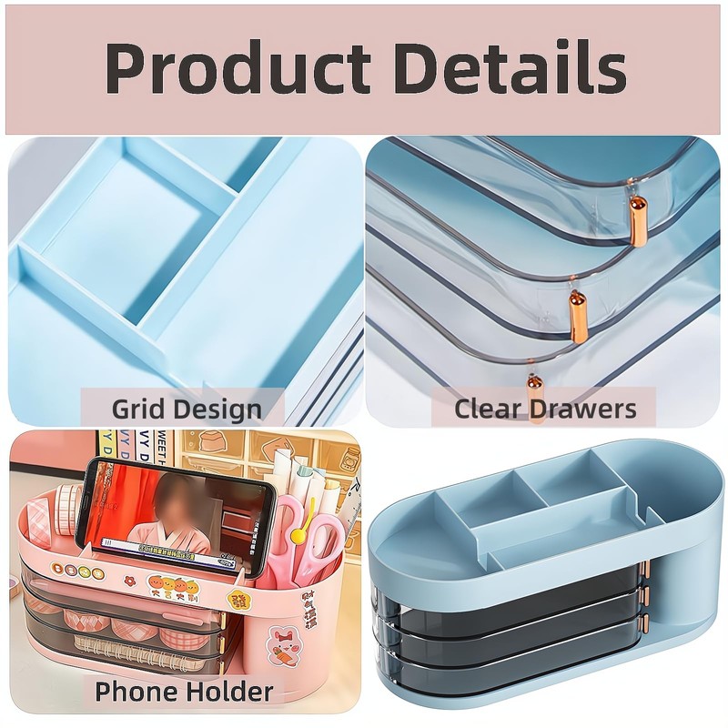 wordmouk Schreibtisch Organizer Büro Organizer mit 3 Schubladen Multifunktionaler Stifthalter Organizer Desk Storage Box für Remote-Control Kunstbedarf Bleistifte Schreibwaren Blau