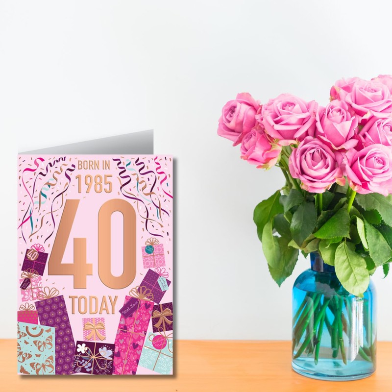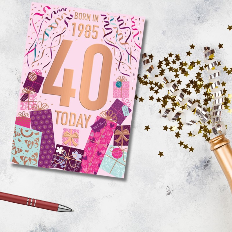 Words 'n' Wishes Female 40th Birthday Card - Happy Birthday Card Age 40 with Born in 1985 Confetti Design and Embossed Foil Details - Birthday Card for Women