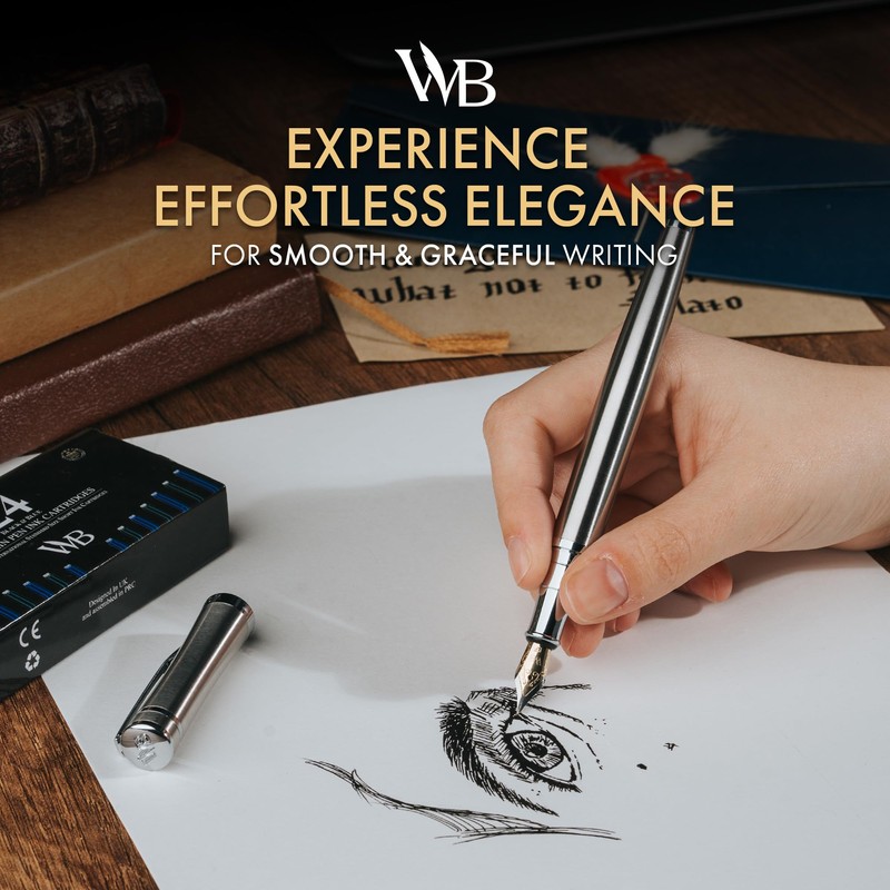 - ✒️ Discover The All-inclusive Refillable Fountain Pen Set - Includes luxurious Fountain pen, Ink converter, 12 x blue ink cartridges, 12 x black ink cartridges, Premium Leather Gift box - ready to be gifted. Included with every order is a complete instruction booklet for your Wordsworth and Black Pen Set. All the information you'll need to get started using and enjoying your luxurious writing tool will be right at your fingertips!