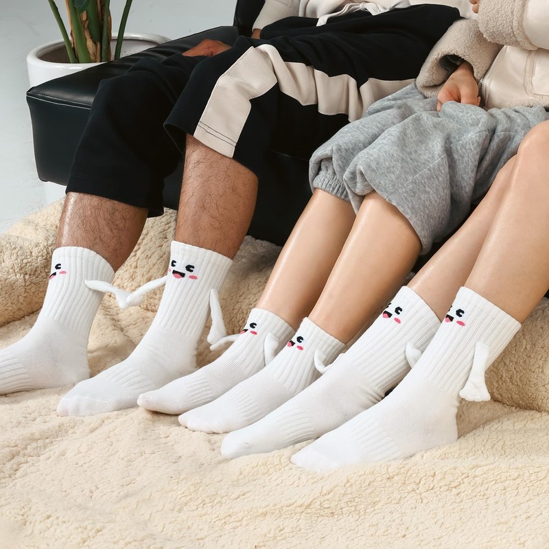 - Lovely Magnetic Attraction Effect: Magnets built into the little hands of the hand in hand magnetic silly socks allow them to attract each other when bring close together.
