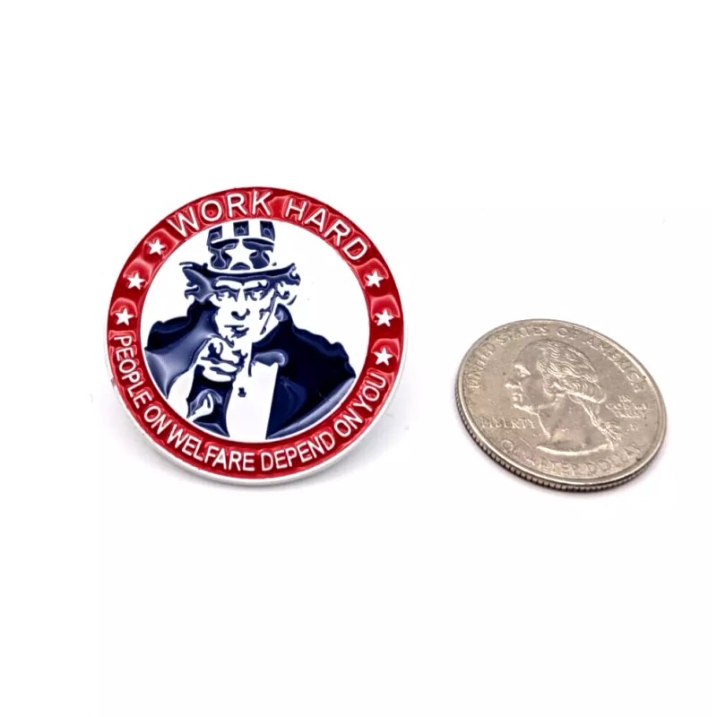 Work Hard - People on Welfare Depend on You - brooch enamel pin, Metal Badge pin