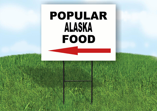 Work House Signs ALASKA POPULAR FOOD LEFT ARROW 18 in x 24 in Yard Sign Road Sign with Stand