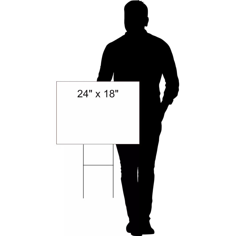 - Double sided plastic yard sign that measures 18"x24"