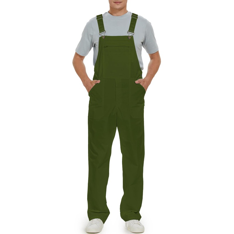 WORK IDEA Men's Bib Overalls,Men's Overalls Workwear Lightweight with Adjustable Straps and Pockets, Army Green, XL