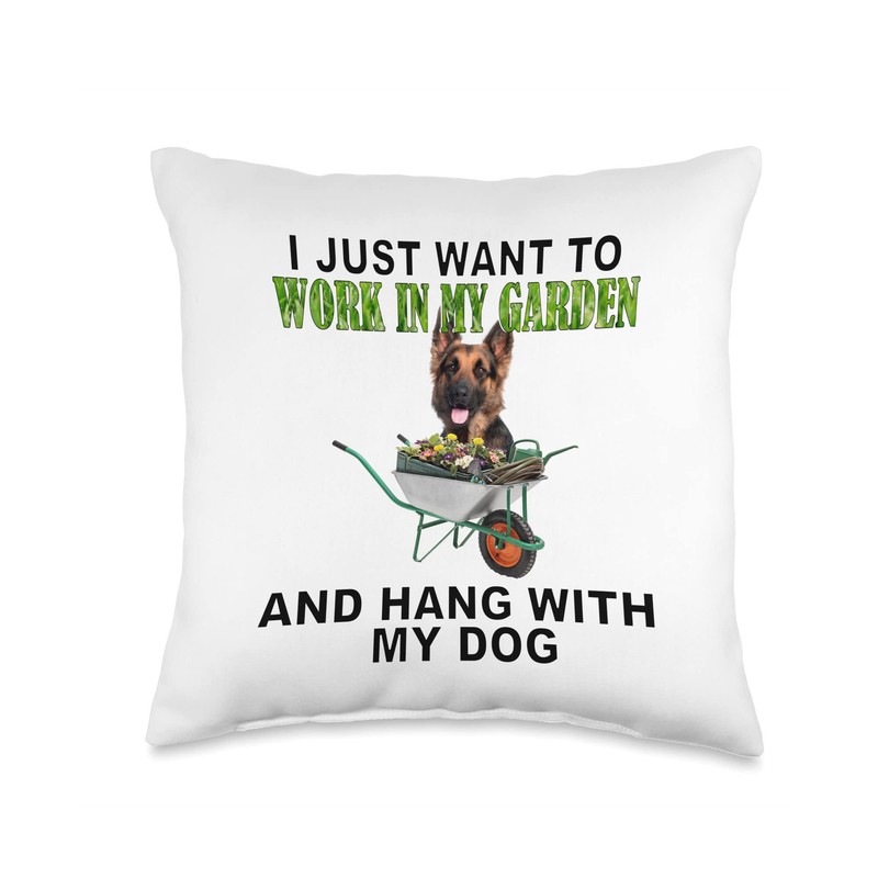 Work In My Garden & Hang W German Shepherd Throw Pillow