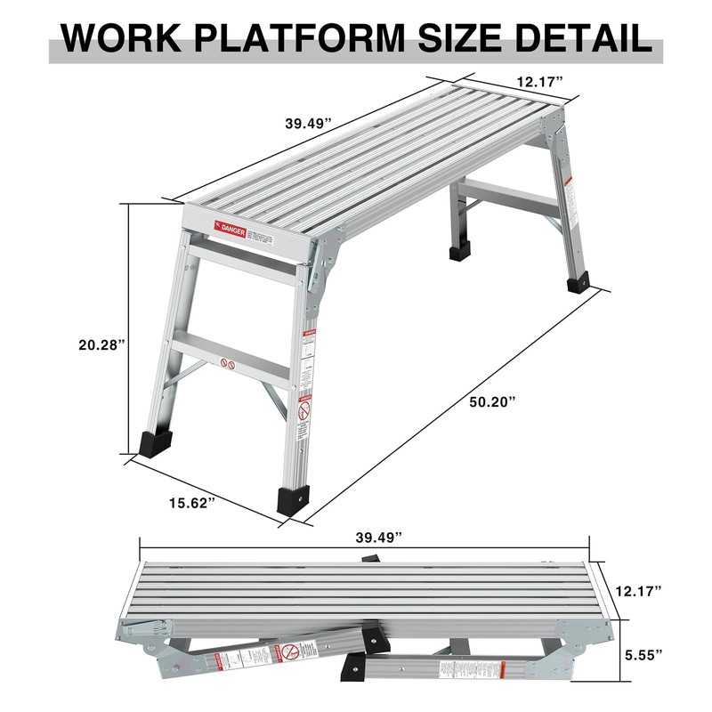 Work Platform Aluminum Step Ladder, Drywall Stool Ladder 225lbs Capacity, Medium Duty Portable Bench, Folding Ladders Stool w/Non-Slip Mat