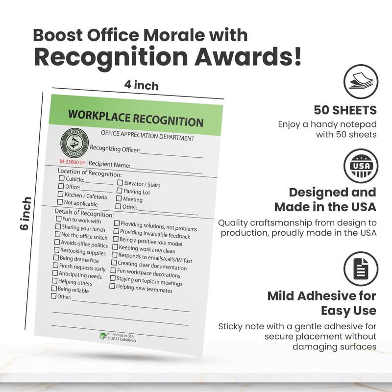 Work Recognition Award for Employees, Office Staff, Coworkers, Cube Mates, and Colleagues - 4 x 6 Inch, 50 Sheets, Self-Adhesive Sticky Notes - Appreciation Notepad by CUBEFINDS