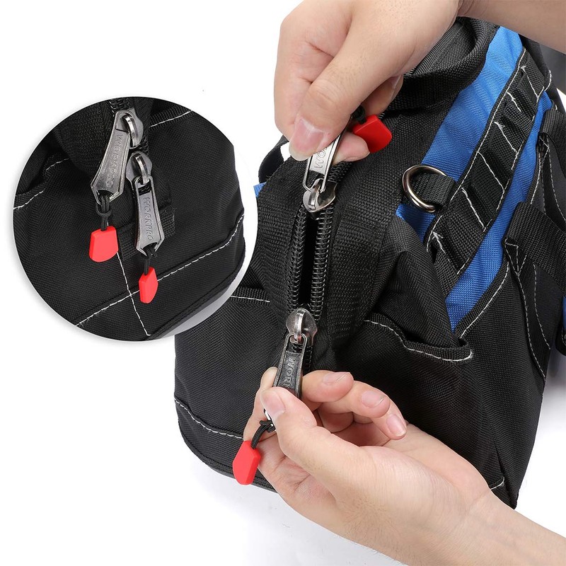 - ✅ Wide Open Mouth And Top Double-Pull Zipper-This tool bag features wide open mouth with an internal metal frame and top double-pull zipper for easy organization and access. Just pull the zipper to open this bag smoothly and put in or take out your tools quickly when needed
