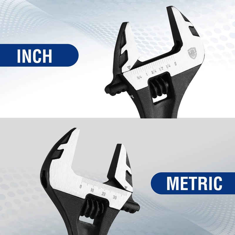 - 6-inch (150mm) & 10 inch (250mm) adjustable wrench with inch/metric measurement scale