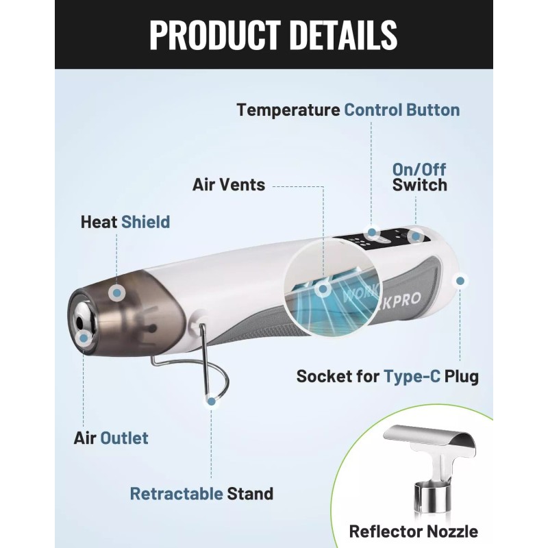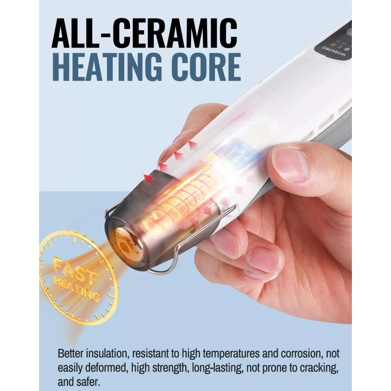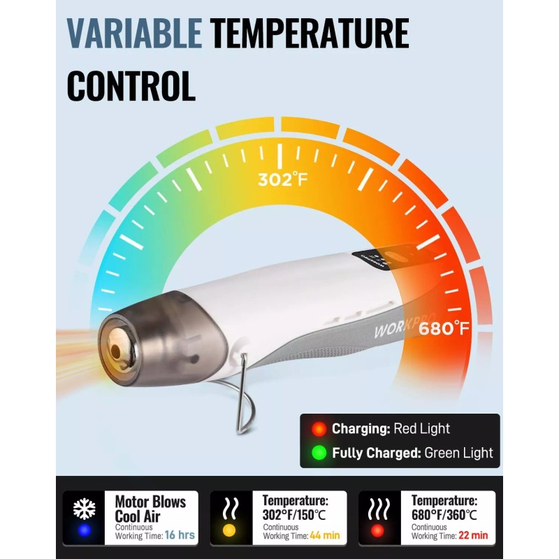 Workpro 7.2 V Mini Cordless Heat Gun, 680℉ Hot Air Gun with Reflector Nozzle