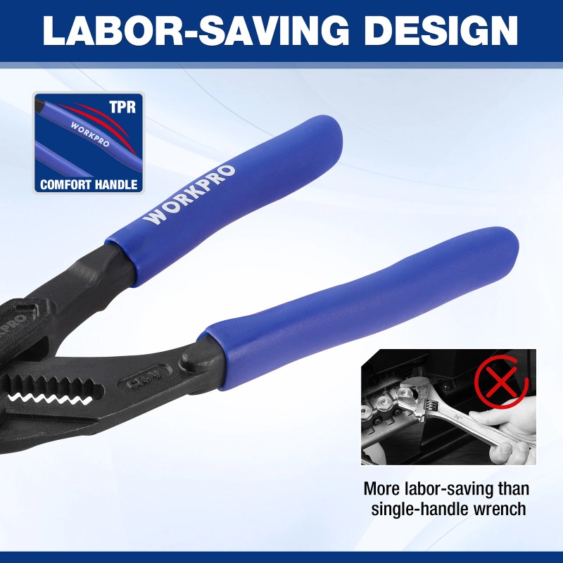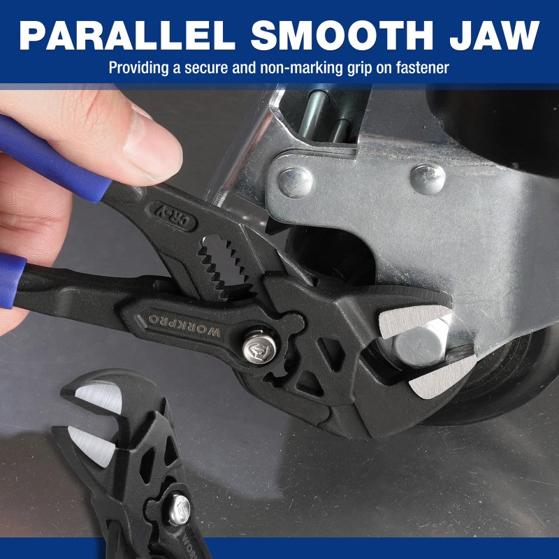 Self-Adjusting Jaw: One of the standout features of the WORKPRO pliers wrench is its self-adjusting jaw, which allows for continuous rotation without the need for constant readjustment. This smooth and continuous operation significantly speeds up the task at hand, making it perfect for professionals who need to maximize productivity