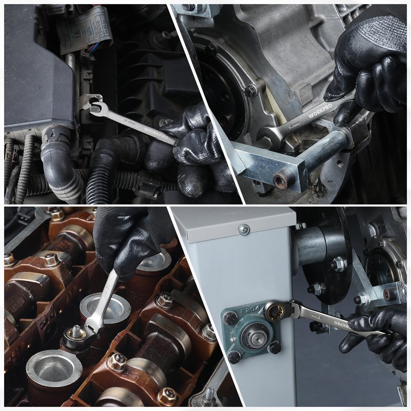 WORKPRO 8mm Flex-Head Ratcheting Combination Wrench, Cr-V Constructed, Nickel Plating, 72-Teeth, 12 Point Design, Metric