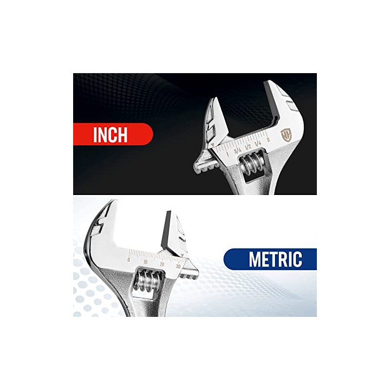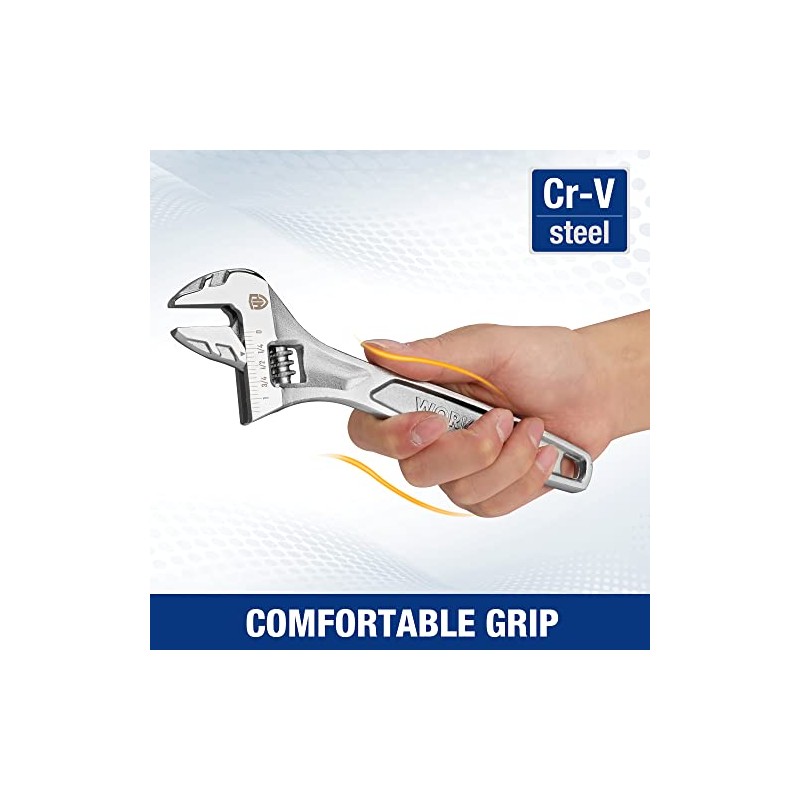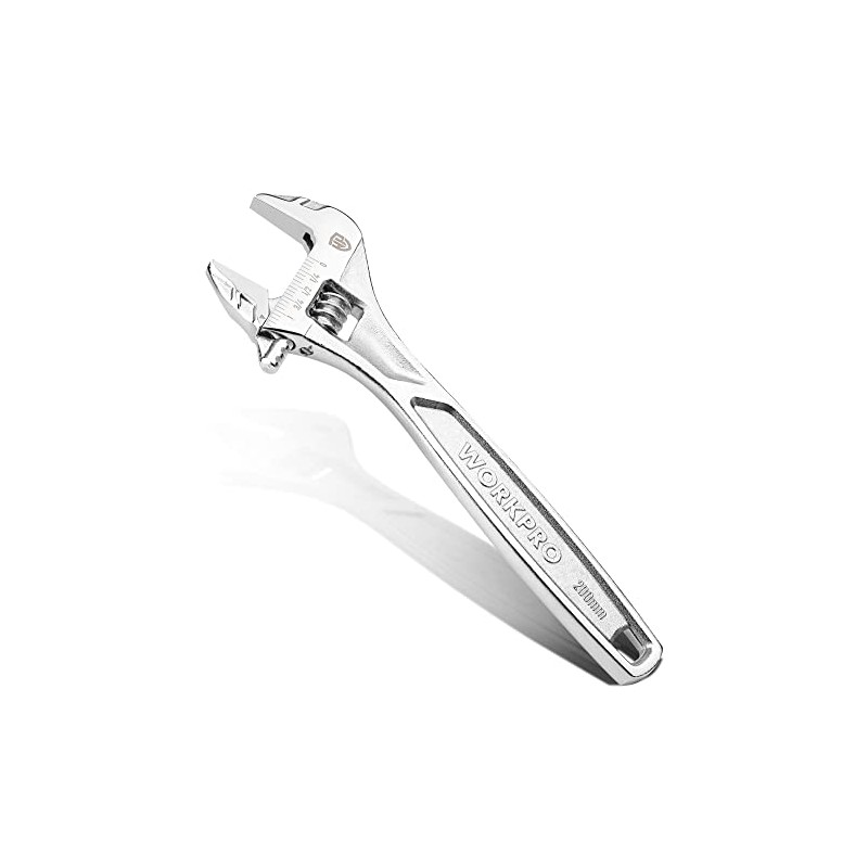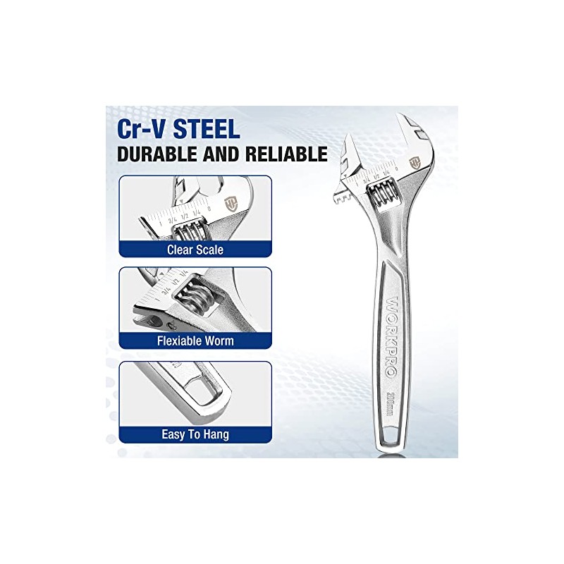 WORKPRO Adjustable Wrench, 8-inch Heavy Duty Spanner with Inch/Metric Scale, Premium Cr-V Steel, Chrome Plated