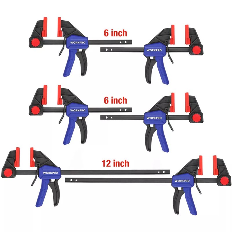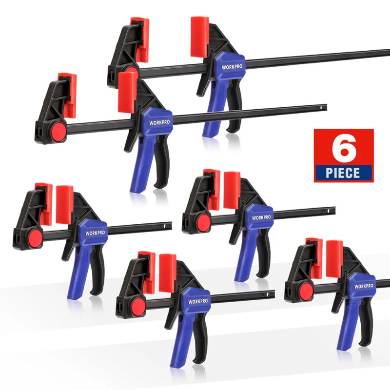 WORKPRO Bar Clamps for Woodworking 6Pk One-Handed Clamp/Spreader 6'' (4)&12''(2)
