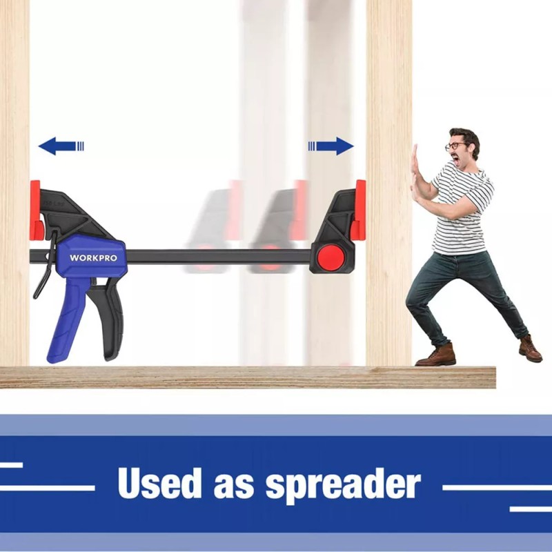 Clamp & Spreader - The unique quick-change button design allows the f clamp to be a spreader as well. Just press the red button to take the jaw off and then reverse it before putting it back in, you will get the spreader you need.